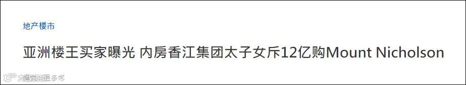 不仅仅是香江集团的“公主”喜欢买Mount Nicholson的豪宅,香江集团的创始人和太子也喜欢买入同一小区。