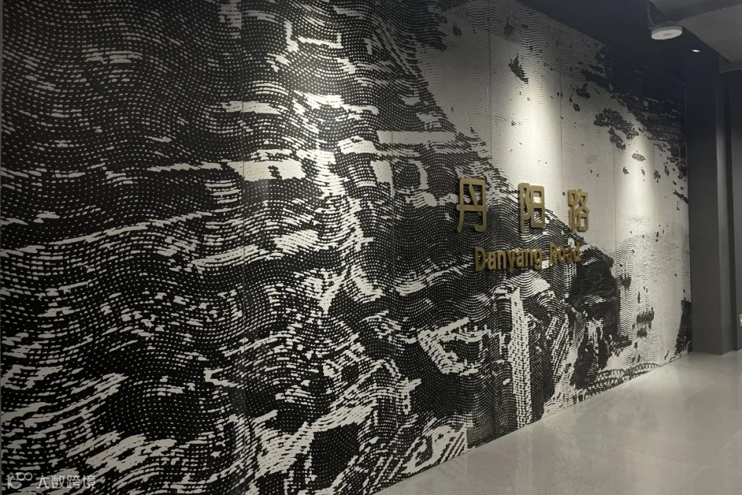 丹阳路站作为建成后的“网红车站”,除了采用一明一暗的色系风格以充分融合周边的建筑,同时在车站内部公共区域也采用了类似的不同风格的装修手法。比如墙面采用了搪瓷钢板(烤瓷铝板)+GRG艺术肌理墙面+搪瓷钢板(烤瓷铝板)的三明治做法,整体相得益彰。