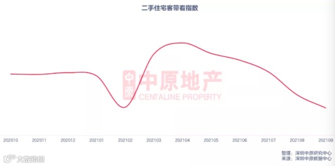 深圳中原研究数据显示,5月以来,二手住宅客带看指数持续下滑,9月二手住宅客带看指数下滑了32.3%,至59.4%。