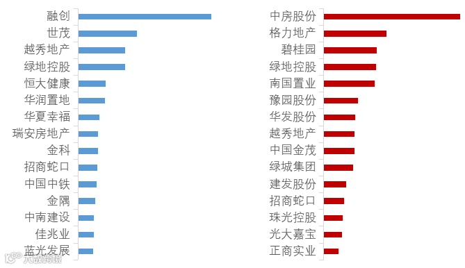 图:2019年(左)和2020年(右)重点房企收并购交易金额