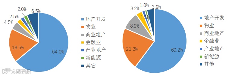 图:2019年(左)和2020年(右)重点房企收并购标的类型分布