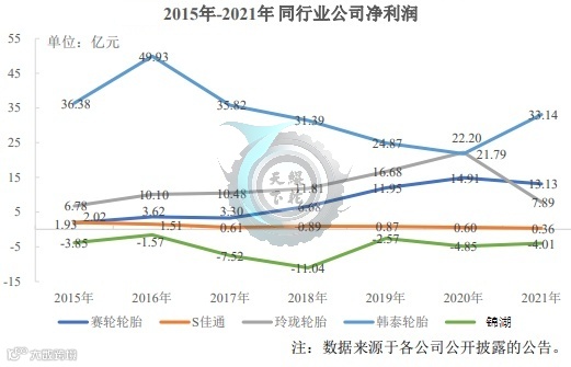 虽然2023年度双星收入266亿元排在第三名的赛轮255亿元之前,但其净利润与上图的赛轮净利润相较,形成鲜明区别。