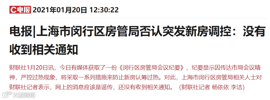 此后不久,上海房管局又再次对此事进行了回应,称上海并未出台楼市调控新政策,仅是对原有政策的强化,要求加强原有政策的执行,要求加强销售管理,杜绝楼市销售环节中的不规范现象。