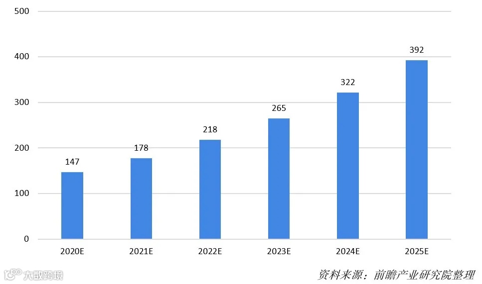 图表:2020-2025年人工智能技术对中国零售市场产生的直接经济产出规模(单位:亿元)