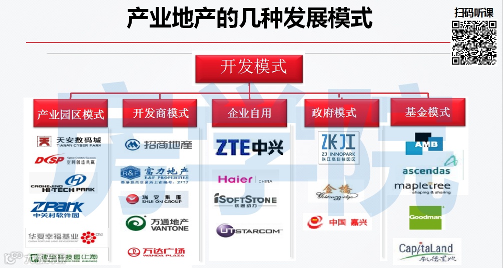 第一,在过去很长一段时间里,中国产业地产一直分成两个派别,一个派别是所谓的“产城派”,你可以看到有好几家公司在说产城模式;另外一个门派是标准的“园区派”。