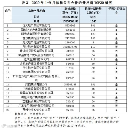 用益信托数据显示,今年1~9月份,57家信托公司共计为320家房地产开发商(其中百强企业57家)5473只信托计划提供了融资。在57家信托公司合作的房地产企业总额中,百强房企的合作规模占比达到46.75%,去年全年为33%。这也说明,不同体量规模的房企在信托融资市场上的进一步两极分化,头部房企的融资额度会更高。