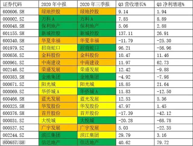 对比2020年中报,招商蛇口已经从橙色转为黄色,荣盛发展从橙色降为黄色,华侨城、大悦城转为绿色。