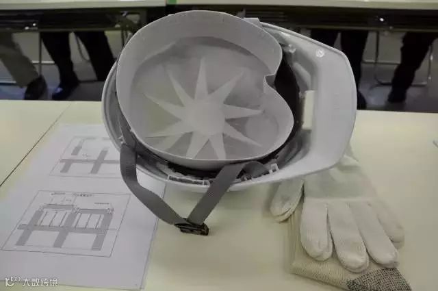 干净整洁的工地:刚到工地会议室,看到主人为参观者准备的安全帽,帽子是崭新的,内部还配置了一次性的卫生护圈,很是卫生和贴心啊! 不像国内建筑工地常看到的那种黑糊糊、汗腻腻、沾满灰尘的安全帽。主人还为参观者准备了手套和一次性袜套。