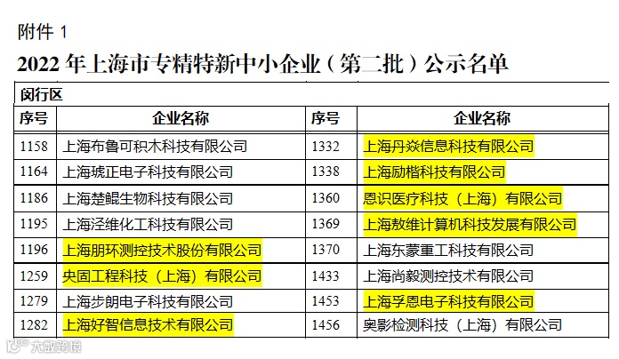 近日,上海市经信委网站发布2022年上海市“专精特新”企业名单(第二批)公示,根据《上海市优质中小企业梯度培育管理实施细则》,经专家评审和综合评估,863软件基地有8家企业被拟认定为上海市专精特新中小企业,另有1家企业拟通过复核。截至目前,基地培育上海市专精特性中小企业总数达26家。未来,基地将依托上海科创集团资源优势,深耕科技企业孵化事业,服务和培育更多优质科技创业企业。