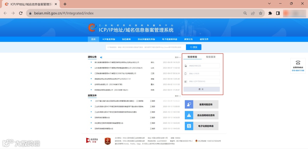 你的备案初审通过后,会收到工信部发送的核验短信(发送号码:12381),请在收到短信的24小时内登录工信部备案官网首页完成短信核验,短信核验成功后备案申请进入通管局审核流程。
