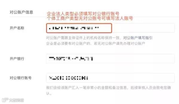 需要提醒的是,选择【企业法人】银行账号必须是对公账户