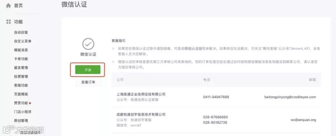 注册账号后,点击【设置】-【微信认证】,点击【开通】按钮,开始微信认证。