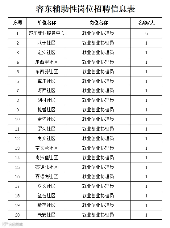 为满足容东回迁后社区治理需求,经容东管委会决定,招聘25名高校毕业生从事就业创业辅助工作,现公告如下。