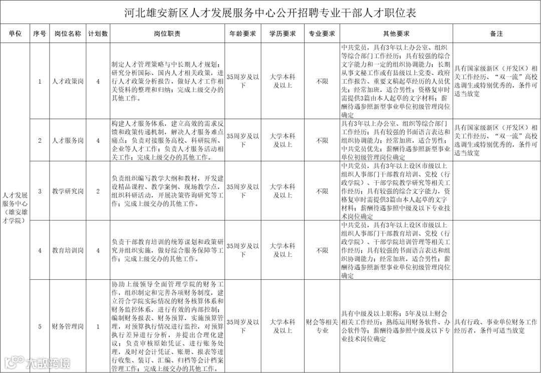 河北雄安新区人才发展服务中心公开招聘专业干部人才公告