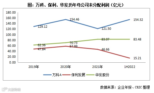 2022年上半年万科A股母公司的未分配利润为154.32亿元,较期初增长了27%,是三家房企中规模最高的。而万科在定增预案中提到“本次发行前的滚存未分配利润由本次发行完成后的新老股东按照发行后的股份比例共享。”而这对于原中小股东而言,存在着一定的损失。