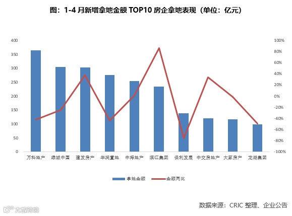 拿地金额TO20中,超过半数是国企、央企,仅有碧桂园、龙湖、滨江、大家等少数民企。华润、建发、中海等拿地金额均超过250亿元。由此可见,当前规模化的国央企如华润、中海、保利、中交、建发等在核心城市拿地优势较大,尤其是部分集中供地城市”让利“之下,优质、高性价比地块补充可售货值的同时,也优化了企业土储结构。民企中,受益于集中供地,一些区域深耕的房企表现较为突出。如滨江、大家等在杭州均收获颇丰。其中滨江1-4月新增拿地金额233.8亿元,同比增长86%,拿地几乎全部集中在杭州。