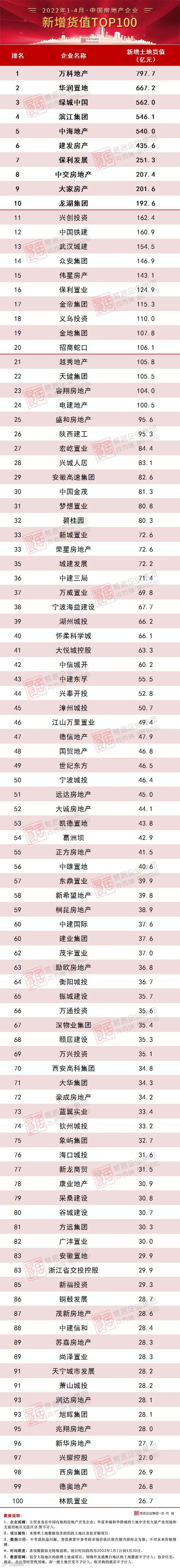 5家房企年内新增货值超过500亿元,万科以797.7亿元位列第一,本月万科在深圳竞得宝安新安地块货值就超过百亿,其次华润、绿城、滨江和中海货值也超过500亿。
