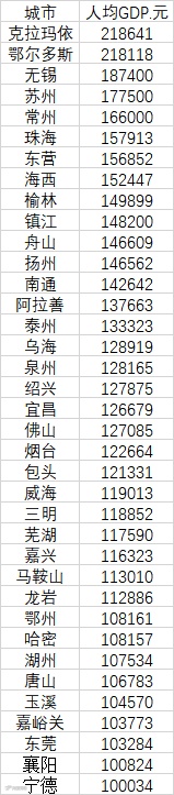 江苏入围的7个地级市分别是无锡、苏州、常州、镇江、扬州、南通、泰州,全部来自苏南和苏中地区。其中苏南的无锡、苏州、常州,其人均GDP分列地级市第三到第五位,分别达到了18.74万元、17.75万元、16.6万元。