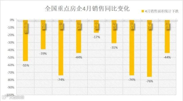整个4月,龙头房企们仍然活得痛不欲生,业绩同比极度萎靡: