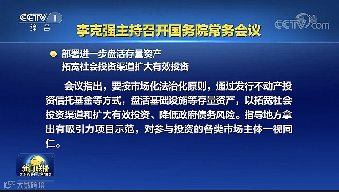 5月11日的国务院常务会议上,重点部署了进一步盘活存量资产,拓宽社会投资渠道扩大有效投资。