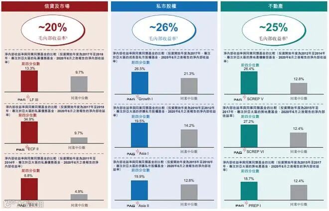 PAG的新基金策略亦展现出提供行业领先回报的能力。根据NMG的资料,公司私市股权策略部门的首个成长基金(PAGGCI)所提供的回报实现了26%的强劲的净内部收益率,而同业同类基金为21%。公司的核心增值不动产基金(PREPI)已实现19%、排名前四分位数的净内部收益率,而同业同类基金则为12%。