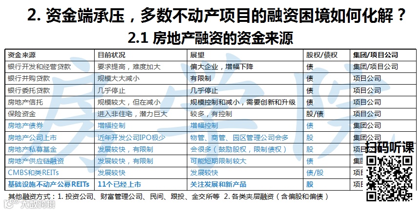 由于许多商场、写字楼、产业园区等存量地产涉及到投资-融资-管理-退出的完整链条,投融资是核心业务之一,没有市场资金支持,这个精密的业务链条将断裂并出现难以想象的后果。