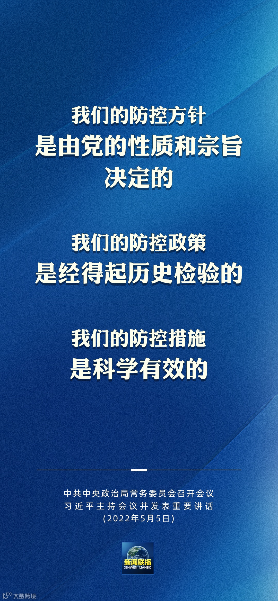 实践证明,我们的防控方针是由党的性质和宗旨决定的,我们的防控政策是经得起历史检验的,我们的防控措施是科学有效的。我们打赢了武汉保卫战,也一定能够打赢大上海保卫战。
