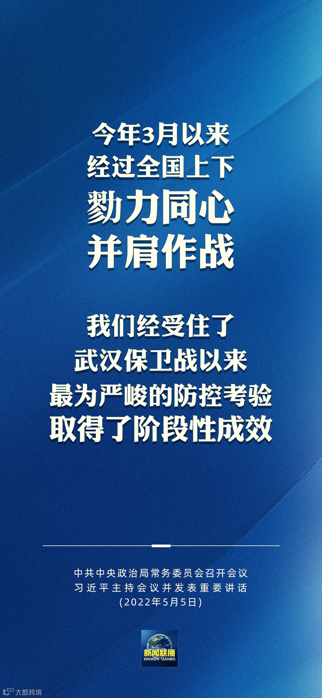 5月5日,中共中央政治局常务委员会召开会议,分析当前新冠肺炎疫情防控形势,研究部署抓紧抓实疫情防控重点工作。中共中央总书记主持会议并发表重要讲话。