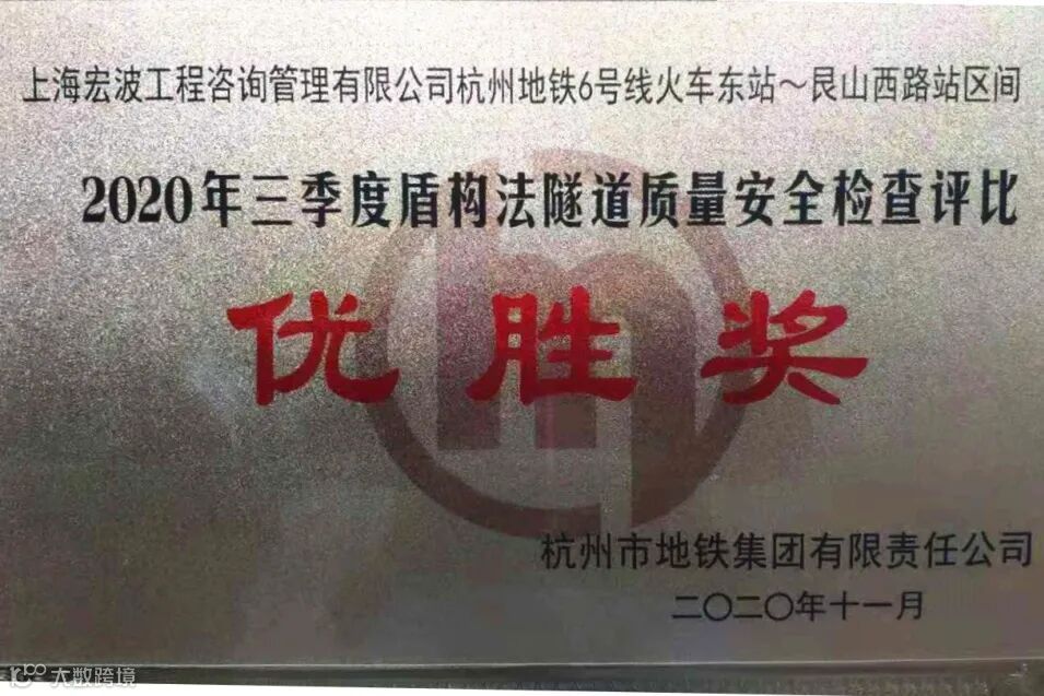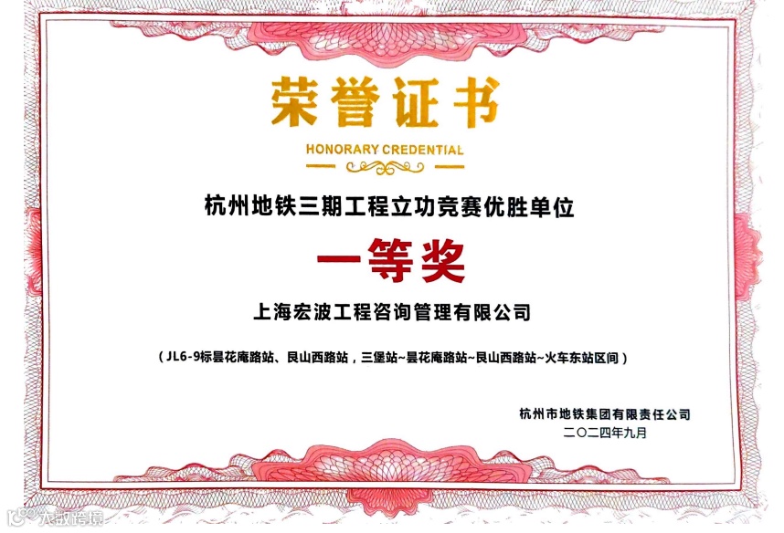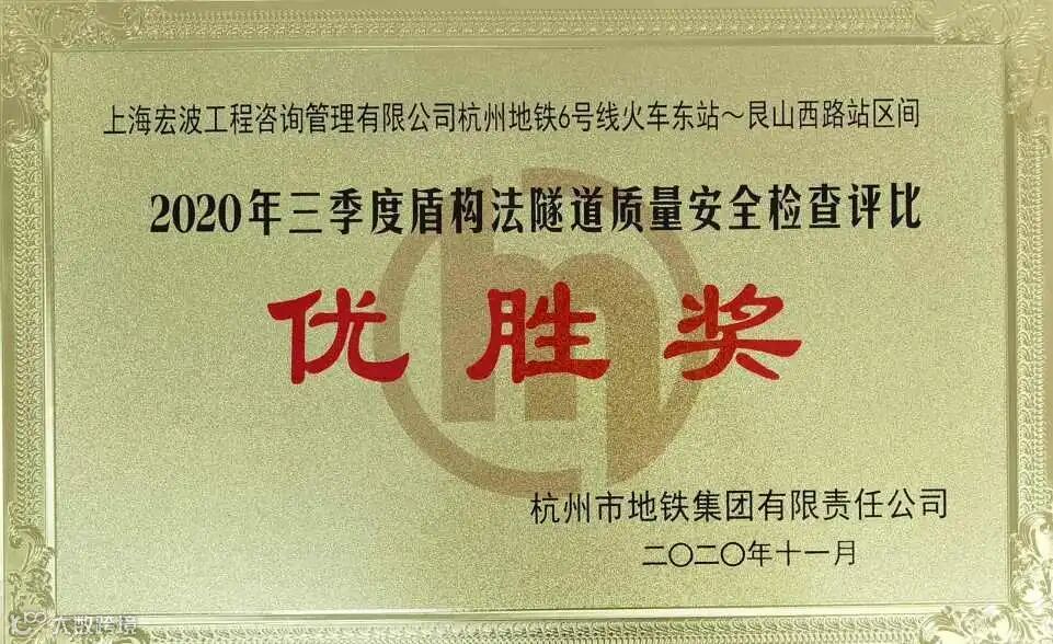 从6号线9标开始参建杭州地铁建设,近年来在项目建设中,宏波人秉承“高起点、高标准、严要求”的一贯作风,以优质工程创建为抓手,凭借出色的执行能力和技术实力高质量完成了监理工作,以实际行动践行“以质量铸就完美”的实干精神。公司获评杭州地铁三期工程立功竞赛优胜单位一等奖。