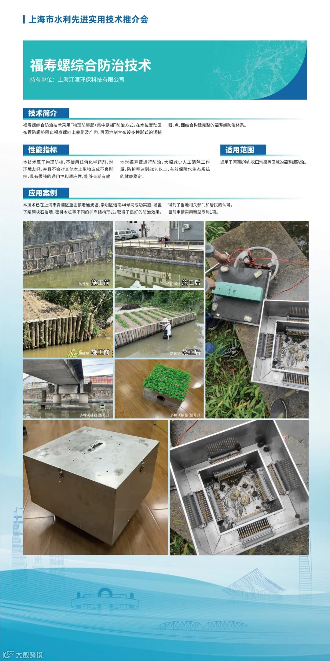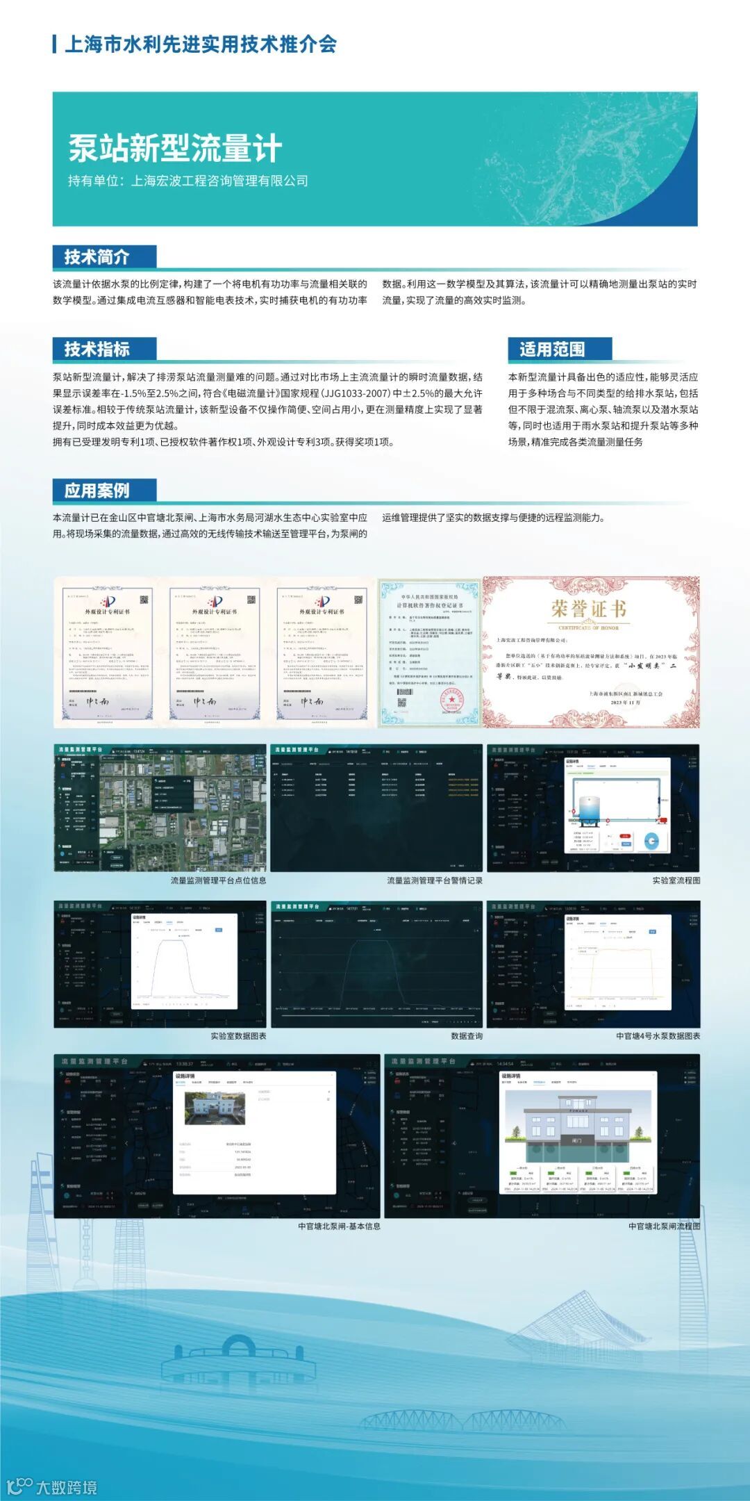 经过严格评审,本次推介会最终筛选出60项先进实用技术。其中,上海宏波公司的4项成果——堤防运行风险信息化管控技术、泵站新型流量计、水闸过闸流量物联网管理平台和福寿螺综合防治技术成功入选。