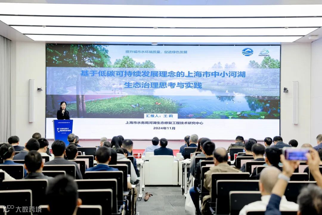 会上,宏波公司生态环境板块副总经理、上海市水务局河湖水生态修复工程技术研究中心副主任王莉作“基于低碳可持续发展理念的上海市中小河湖生态治理思考与实践”主旨报告,子公司上海汀滢环保科技有限公司副总经理谈祥作“福寿螺综合防治与水体清澈度提升技术交流”,分享了近几年公司在河湖治理中的技术创新及经验。
