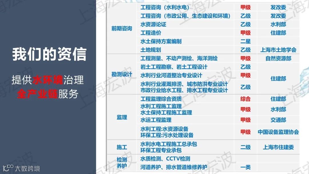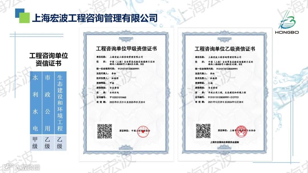 公司拥有国家发改委、住建部、水利部及国家技监总局等部门颁发的多项高等级资质,范围涵盖建设项目全过程,为企业、社会和政府提供全过程、全方位、综合性、菜单式工程咨询服务。