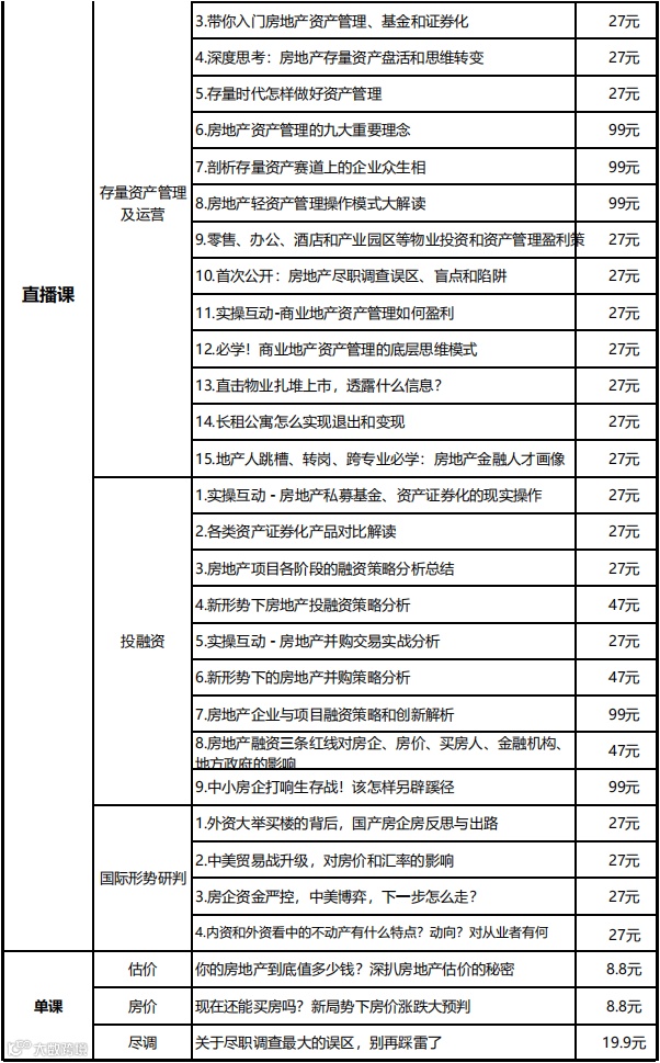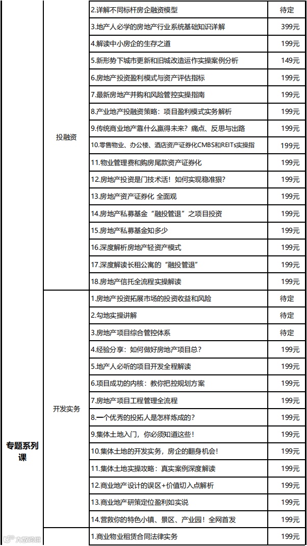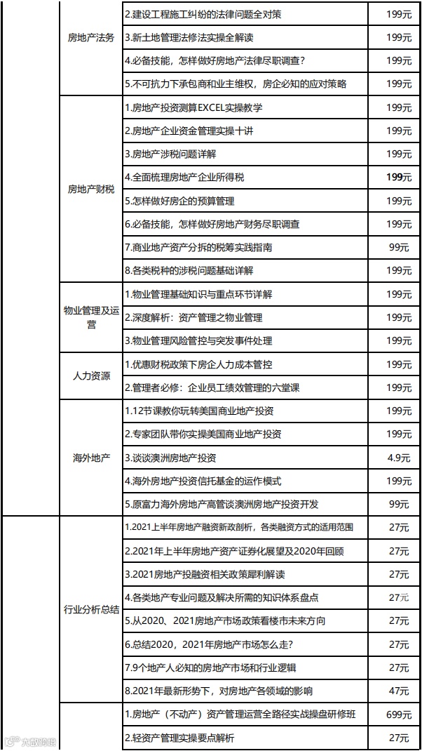线上学院有超过500节精品地产专业课,加入房学院的深度VVIP会员,自购买日起一年内,一年内都能反复学习,附赠上千页独家课件资料:
