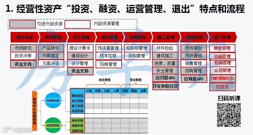 1. 经营性资产“投资、融资、运营管理、退出”特点和流程
