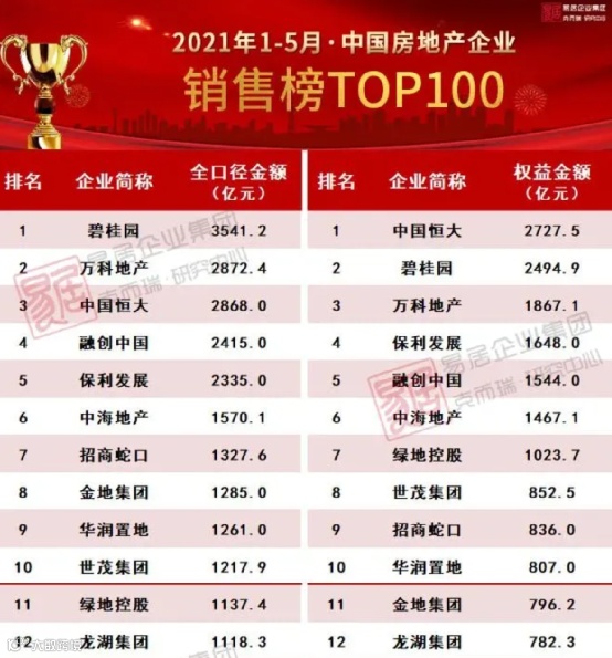 2021年前5月,6家央国企分别是万科、保利、中海、招商蛇口、金地、华润!剩下四家是民营房企碧桂园、恒大、融创、世茂!