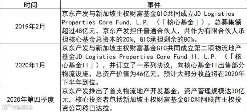 在两支物流地产核心基金中,京东产发当GP,新加坡主权财富基金GIC当 LP。