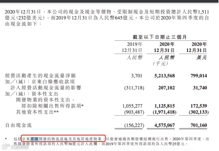 2020年全年,京东产发出售开发物业所得款项约48亿元,而2019年全年约为79亿元,两年时间出售开发物业所得款项合计达到127亿元。