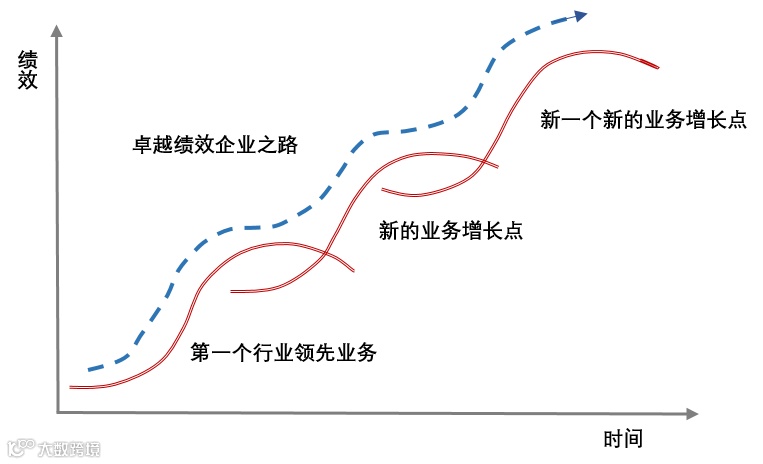 根据英国管理大师查尔斯·汉迪的第二曲线理论,如果组织和企业能在第一曲线到达巅峰之前,找到带领企业二次腾飞的“第二曲线”,并且第二曲线必须在第一曲线达到顶点前开始增长,弥补第二曲线投入初期的资源(金钱、时间和精力)消耗,那么企业永续增长的愿景就能实现。