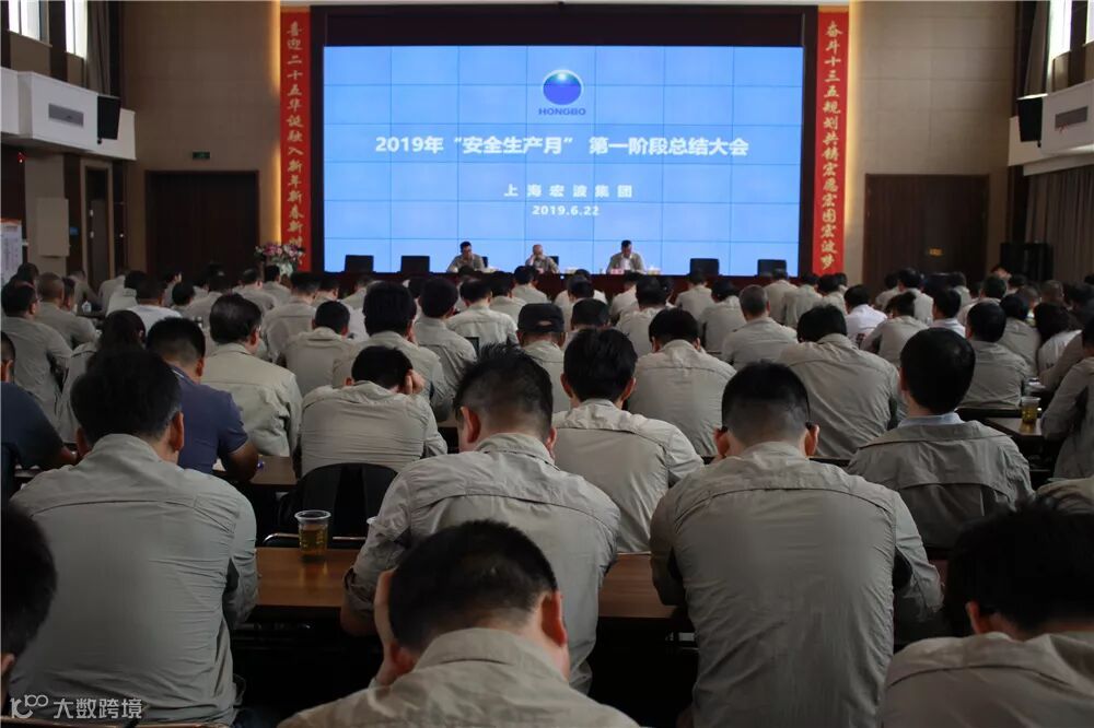 6月22日,上海宏波集团组织召开2019年度“安全生产月”活动第一阶段总结大会。会议由集团高级副总裁梁捷主持,主要议程有:观看大型安全警示教育片;集团副总裁陈铭辉传达近期上级文件精神;集团高级副总裁梁捷作2019年度第一阶段安全生产月活动总结;集团总裁李松讲话。出席会议的有集团领导,四个业务板块及其各下属事业部、分公司领导以及各监理部、项目部总监/经理和安全监理等180余人。会后各部门召开部门会议,贯彻会议精神,布置下阶段工作。