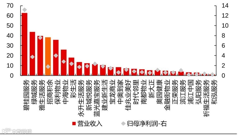 比如,物业管理服务的招商积余的营收规模正持续增长,位于行业前列。年报数据显示,截止到2020年底,招商积余营收为86.3亿,同比42.07%,