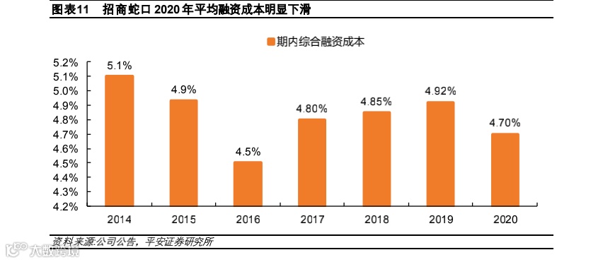 在央企背景以及优秀的财务策略下,招商蛇口连续被MSCI ESG评为BBB水平,年报数据显示,2020年招商蛇口的融资成本仅为4.7%。