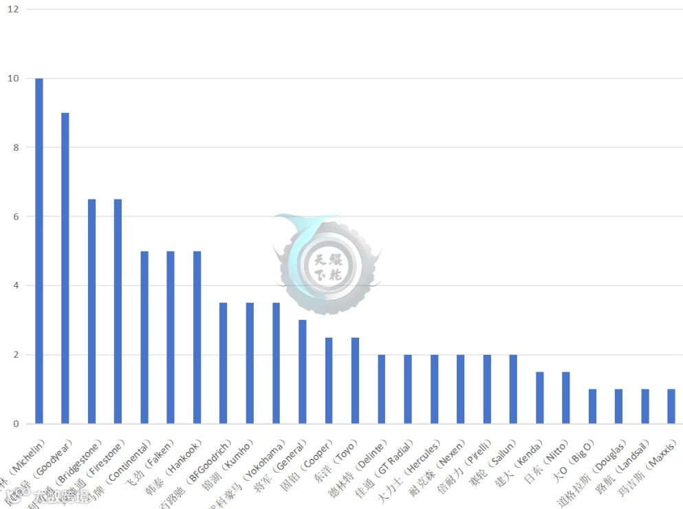 表3美国中重型载重汽车轮胎品牌替换市场TOP18