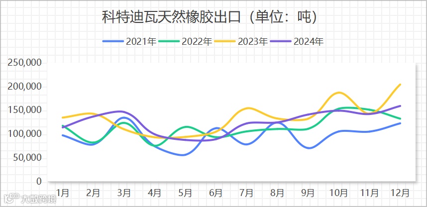 科特迪瓦:2025年1月出口天然橡胶14.27万吨(同比+25.4%),成为全球增长极。其优势在于低成本种植(西非土地与劳动力成本低于东南亚)和欧洲市场就近供应(规避红海航运风险)。但环比下降8%显示其供应链稳定性仍待提升。