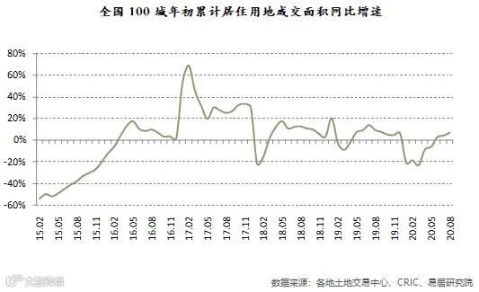 《100城居住用地成交报告》显示,1-8月份全国100个城市居住用地成交面积为42083万平方米,同比增长6.8%。从城市分类来看,一线城市从略偏热阶段开始趋稳,二线城市正逐渐走出负增长区间,三四线城市保持略高的增速。