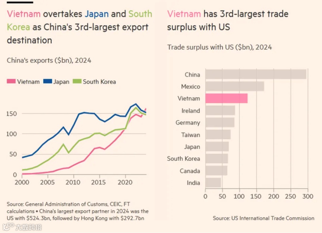 2025年3月,越南政府针对中国企业的审查措施引发广泛关注。英国《金融时报》披露,越南正通过加强尽职调查、限制商品转口贸易等手段,试图规避美国特朗普政府潜在的关税报复。这一举措背后,是越南在中美贸易摩擦中的两难处境:既要维持对美巨额贸易顺差的经济红利,又要应对供应链高度依赖中国带来的地缘政治风险。越南正通过技术壁垒限制部分中资,同时推动中企建立本地供应链,以降低对中国原材料的依赖。