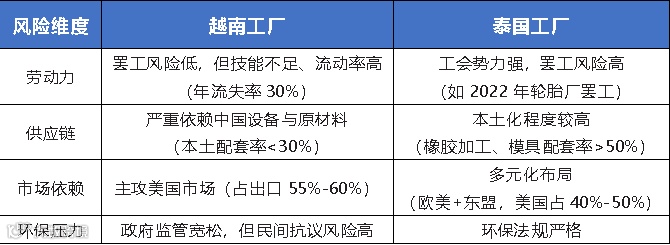 表1 国内轮胎企业越南建厂与泰国建厂风险分析