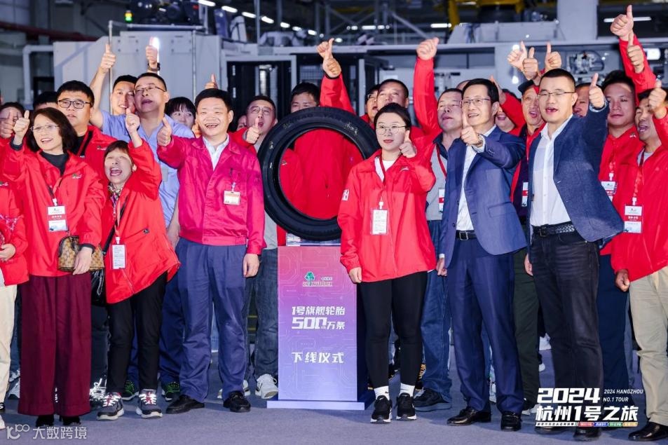 10月29日,中策橡胶在其杭州高性能子午胎绿色5G数字工厂隆重举行了第500万条1号旗舰轮胎的下线仪式。包括葛国荣、蒋志强以及孙振威在内的中策高管团队与众多来自全国的零售商伙伴齐聚一堂见证了这一重要的里程碑。