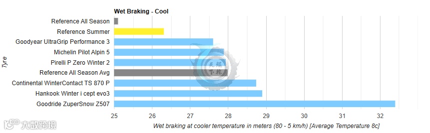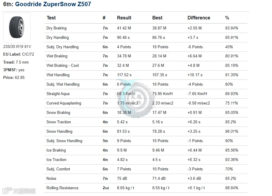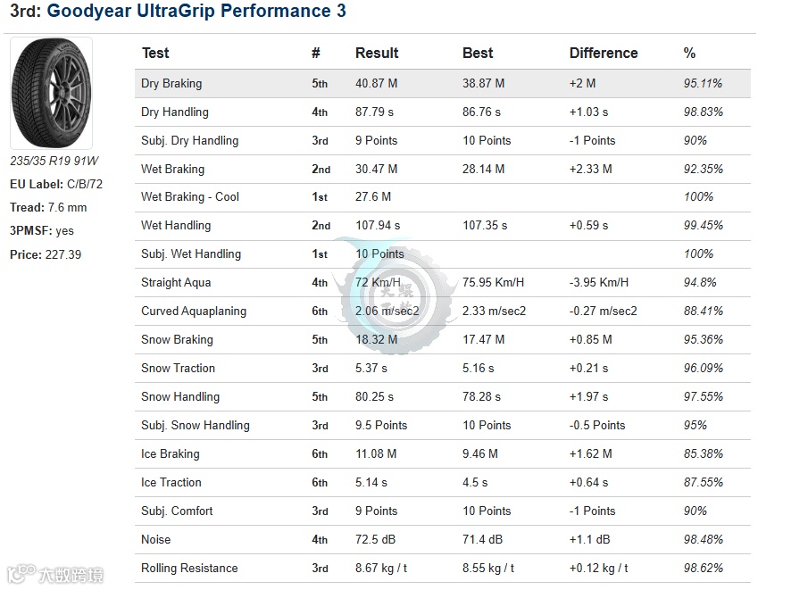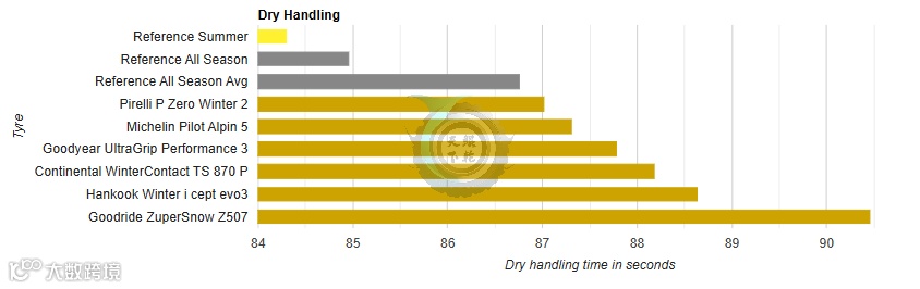 测试目的:比较冬季轮胎与全季节及夏季轮胎在不同条件下的性能,包括制动、操控、舒适性等。