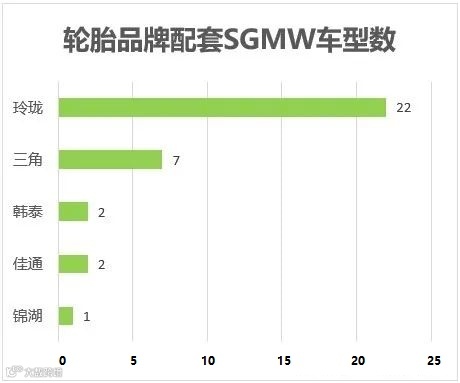 玲珑轮胎:占据了SGMW轮胎市场的约80%份额,参与了所有在售车型轮胎供应,并在大多数车型中成为独家供应商。