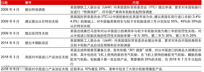 近年来中国轮胎行业遭受美国出口制裁的案件清单